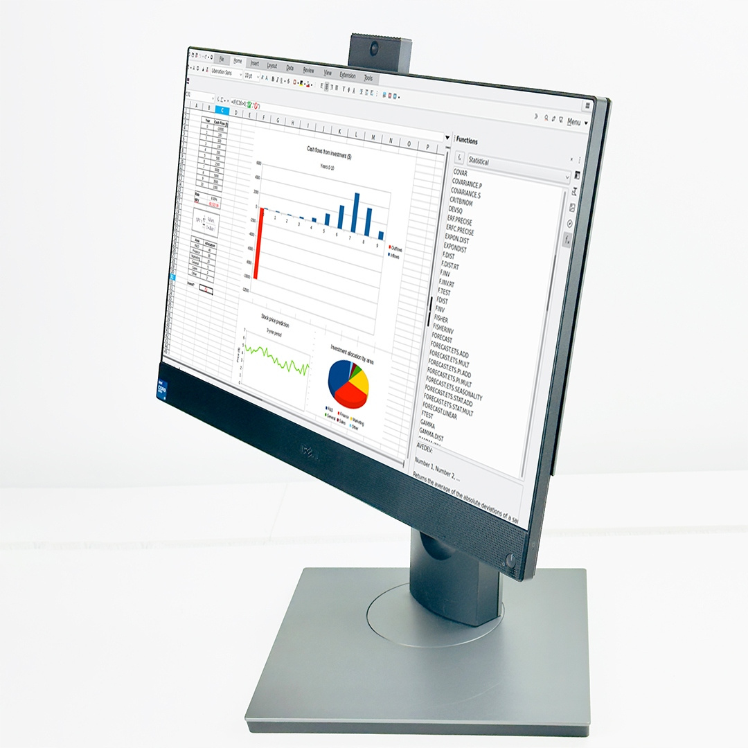 Komputer posiada wysokiej klasy ekran 23.8” o rozdzielczości Full HD (1920x1080), który zapewnia wyraźny, szczegółowy obraz z doskonałym odwzorowaniem kolorów. Matowa matryca minimalizuje odbicia światła, co znacznie poprawia komfort pracy – zwłaszcza w jasnych pomieszczeniach. Zintegrowana kamera internetowa oraz mikrofon umożliwiają wygodne prowadzenie wideokonferencji, naukę zdalną oraz rozmowy online. Dzięki dużemu ekranowi i kompaktowej konstrukcji AiO nie musisz inwestować w dodatkowy monitor – wszystko, czego potrzebujesz, masz już w jednym urządzeniu.