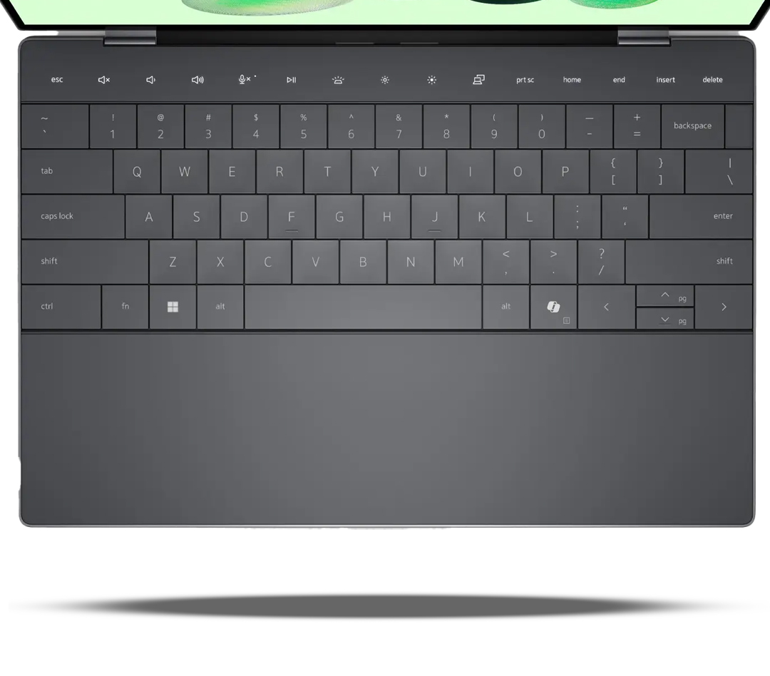 Interakcja z Dell XPS 13 to doświadczenie z przyszłości. Podświetlana klawiatura "zero-lattice" ma duże, wygodne klawisze, które rozciągają się od krawędzi do krawędzi. Zamiast fizycznych klawiszy funkcyjnych (F1-F12), znajdziesz tu elegancki, dotykowy pasek, który płynnie przełącza się między skrótami multimedialnymi a klawiszami funkcyjnymi. Ale prawdziwą magią jest bezszwowy, haptyczny gładzik ze szkła. Cała powierzchnia pod klawiaturą to jeden, wielki i precyzyjny touchpad. Gdziekolwiek klikniesz, poczujesz subtelną, idealnie skalibrowaną wibrację, która daje wrażenie fizycznego kliknięcia. To rozwiązanie jest nie tylko piękne, ale też niezwykle intuicyjne i komfortowe. To trzeba poczuć.