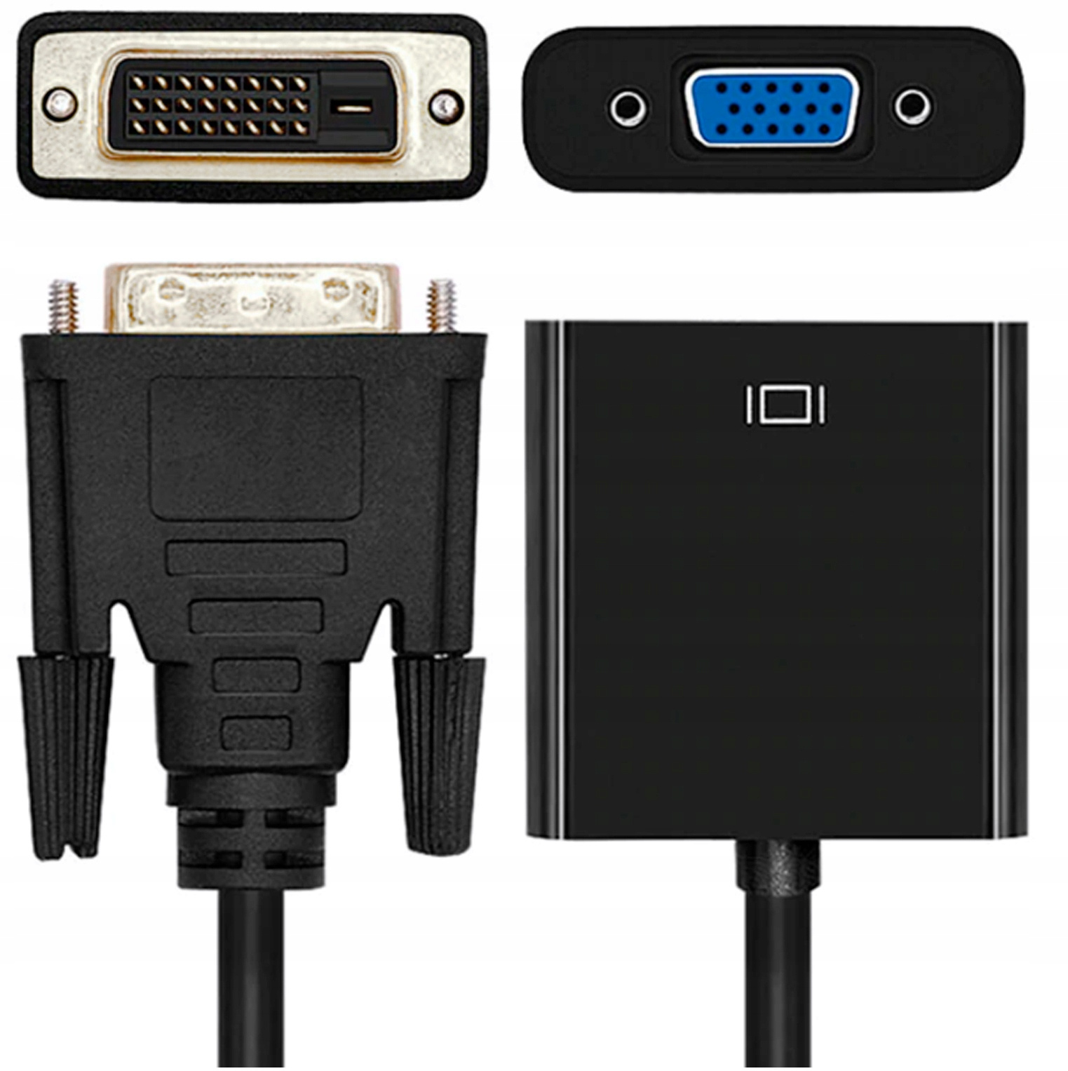 - Umożliwia podłączenie starego analogowego monitora VGA do nowej karty graficznej DVI-D- Obsługuje rozdzielczość HD do 1080p na 60Hz- Nie wymaga instalacji sterowników ani oprogramowania - Konwertuje sygnał wideo z DVI-D na VGA (adapter nie jest dwukierunkowy)