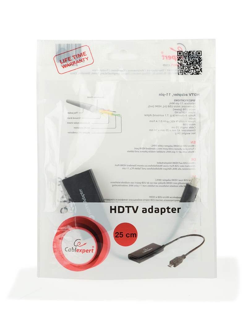 MHL jest Interfejsem HD audio-video umożliwiającym łączenie urządzeń mobilnych (smartfonów, tabletów) z odbiornikami TV. Ten adapter MHL zmienia port micro USB w port HDMI aby cieszyć się zawartością twojego telefonu (biblioteką audio-video). Kiedy podłączysz mysz i klawiaturę na Bluetooth możesz zmienić zwykły odbiornik TV w domowe centrum rozrywki z dostępem do internetu.Adapter Micro-USB na HDMI kabel:- Adapter zamienia port USB w standardowe wyjście HDMI- Współpracuje ze wszytskimi urządzeniami (telefony, smartfony i tablety) z funkcją MHL, 11-pin- Użyj pilota do telewizora w celu kontroli i dostępu do treści w telefonie- Adapter obsługuje standard HDCP- W trakcie podłaczenia do urządzenia zewnętrznego twój telefon jest ładowany nie wymaga dodatkowego