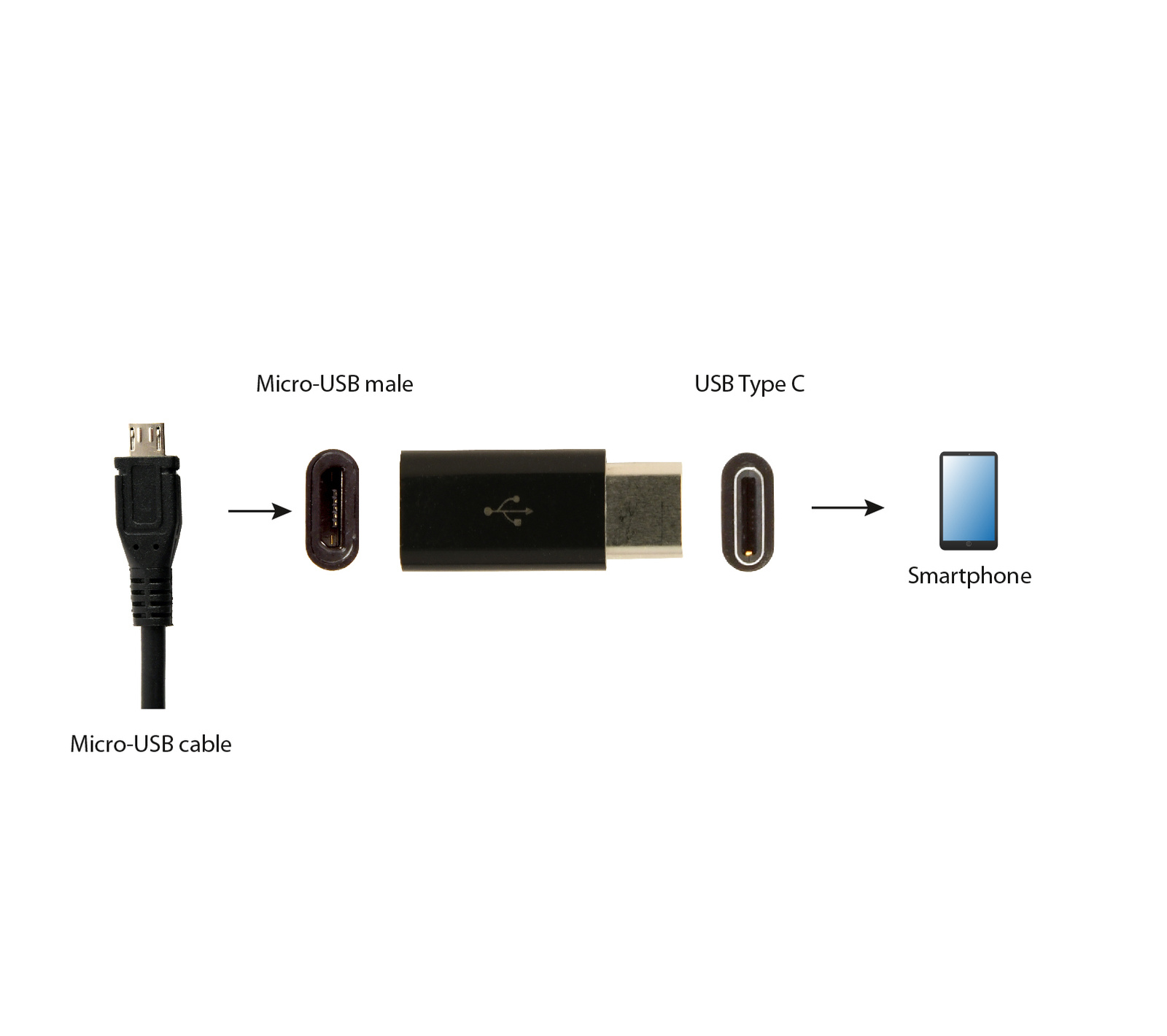 Adapter USB Type-C (CM/MicroUSB-F), black)- USB 2.0 Typ-C męski do wtyczki microUSB żeński- Umożliwia podłączenie dowolnego standardowego urządzenia do nowych portów USB typ-C USB 2.0