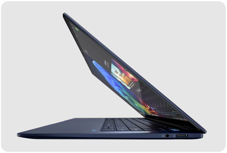 ☑️ Smukła i lekka obudowa z aluminium w kolorze Atmospheric Blue, ważąca zaledwie około 1.35 kg – synonim mobilności i stylu.
