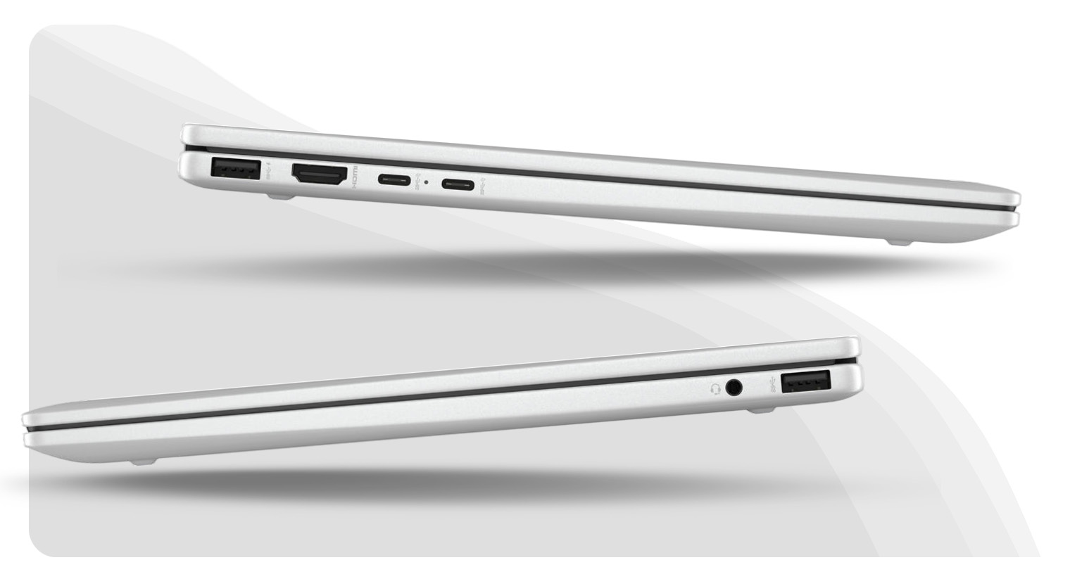 Bądź zawsze online z najwyższą prędkością. Laptop wyposażono w nowoczesną kartę sieciową Wi-Fi 6E, która wykorzystuje mniej zatłoczone pasma, oferując stabilniejsze połączenie i niższe opóźnienia – idealne do streamingu 4K czy gier online. Moduł Bluetooth 5.3 pozwala na błyskawiczne i energooszczędne podłączenie słuchawek, myszki czy telefonu. Mimo smukłej obudowy, HP nie zapomniało o portach. Znajdziesz tu szybkie porty USB Typu-C (z obsługą przesyłania obrazu DisplayPort i zasilania Power Delivery), klasyczne porty USB Typu-A (dzięki czemu nie musisz wyrzucać starych pendrive'ów) oraz pełnowymiarowe złącze HDMI 2.1, pozwalające podłączyć laptopa do telewizora lub projektora bez przejściówek. To kompletny zestaw złączy, który eliminuje konieczność noszenia ze sobą plątaniny adapterów.