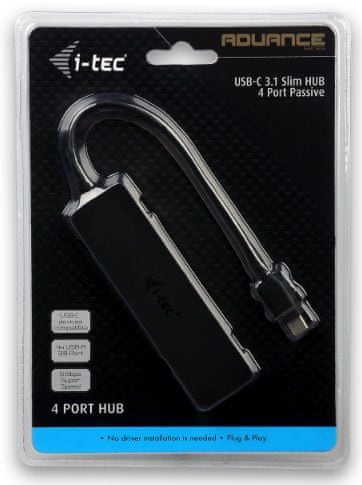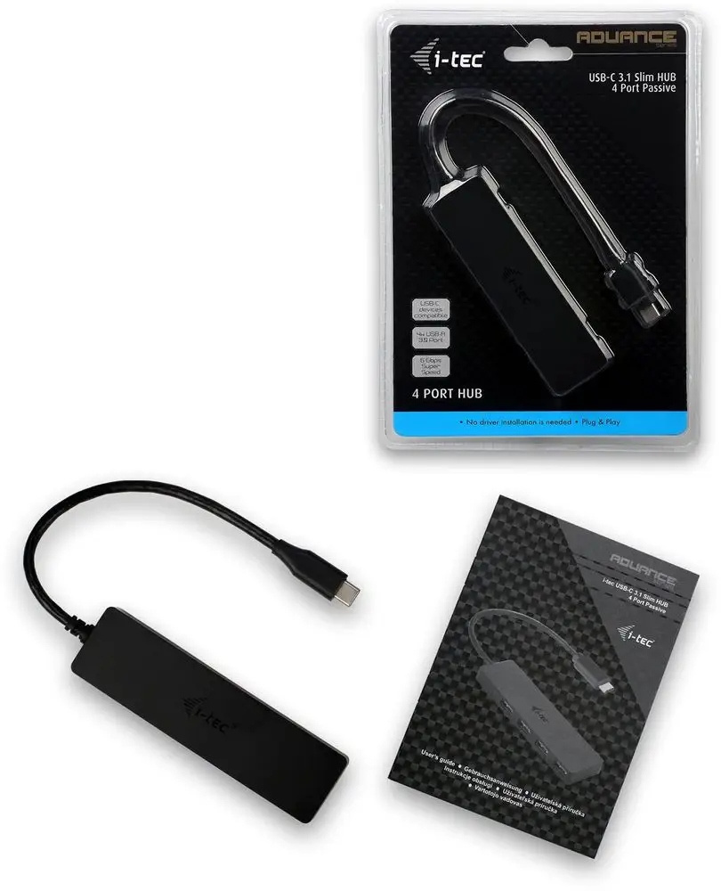 - Akcesoria w zestawie: - i-tec USB-C 3.1 Slim HUB 4 Port z wbudowanym USB-C kablem (20 cm)- Instrukcja