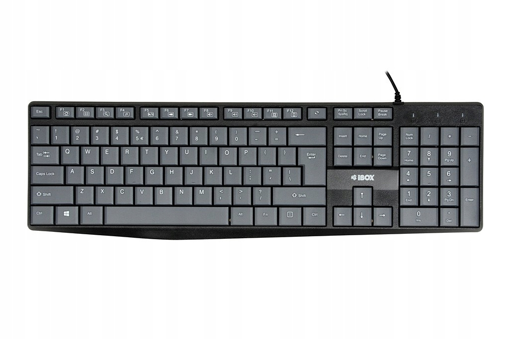 iBOX ErisBiurowa klawiatura Eris cechuje się długim kablem USB oraz odpornością na zachlapania. Idealnie sprawdzi się w biurach.Łatwość ustawieniaKlawiaturę łatwo umieścić na biurku nawet jeśli komputer jest mocno oddalony za pomocą kabla o długości 1,8m.Wygoda pracyKlawiatura posiada wbudowany blok numeryczny ułatwiający pracę biurową. Specjalny kształt klawiszy i duże odstępy między nimi sprwiają, że piszesz bezbłędnie.Odporność na zachlapaniaMożesz pracować bez stresu. Klawiatura jest odporna na zachlapanie