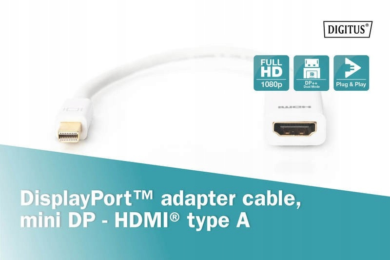 ⭐️Przejściówka mini DisplayPort / HDMI Digitus AK-340404-001-W biała