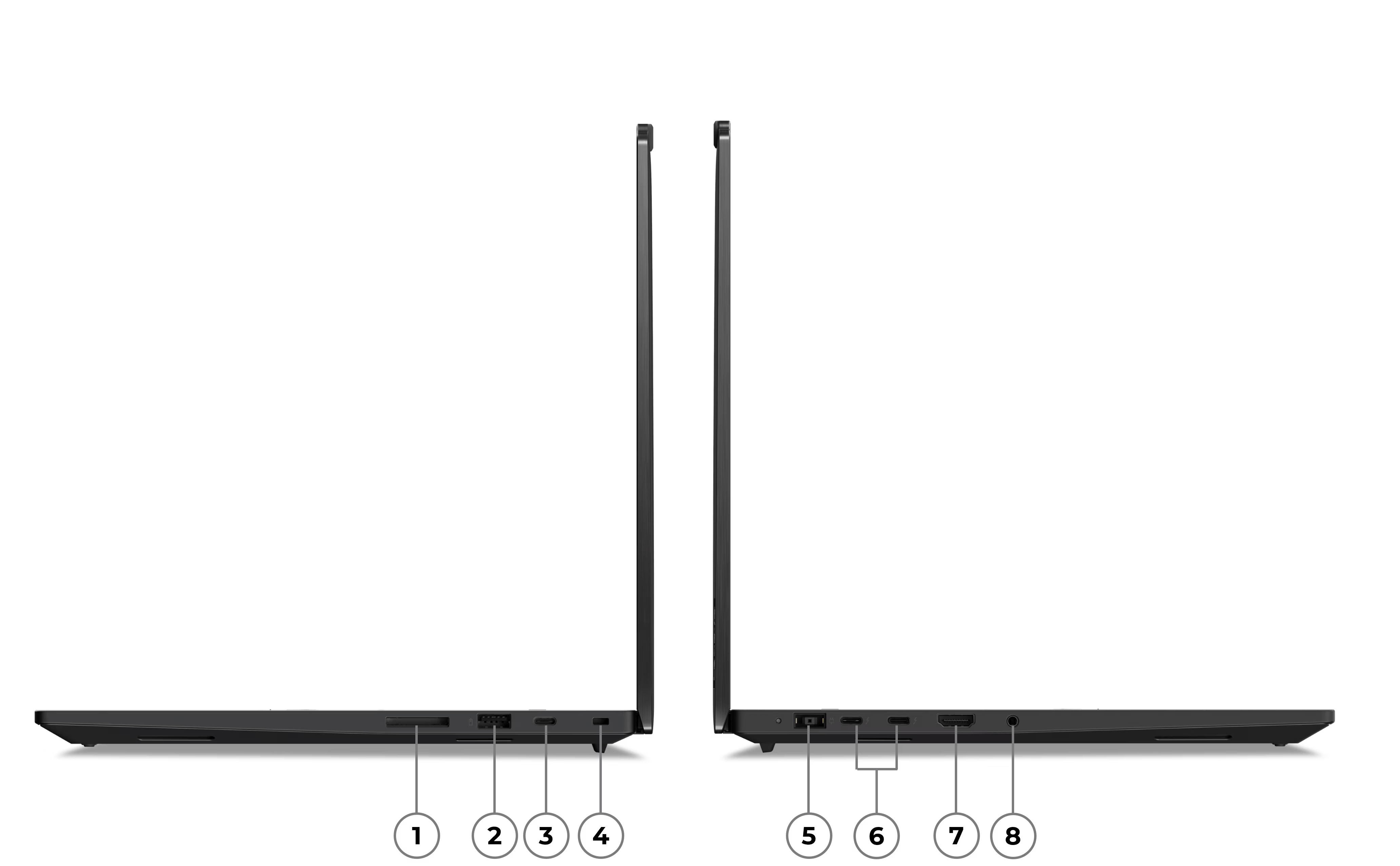 Mobilna stacja robocza musi być wszechstronna. ThinkPad P1 Gen 7 to rozumie i oferuje kompletny zestaw portów, który eliminuje potrzebę noszenia ze sobą przejściówek. Znajdziesz tu dwa porty Thunderbolt™ 4, które są prawdziwymi szwajcarskimi scyzorykami łączności. Oferują transfer danych do 40 Gb/s, ładowanie laptopa, podłączanie zewnętrznych monitorów 4K, a nawet zewnętrznych kart graficznych. Obok nich znajdują się porty USB-A 3.2 do podłączania starszych urządzeń, pełnowymiarowy port HDMI 2.1 do bezpośredniego podłączenia do projektorów i telewizorów, a także czytnik kart SD Express 7.0, który doceni każdy fotograf i filmowiec. Całość dopełnia gniazdo słuchawkowe. Niezależnie od tego, co musisz podłączyć, ThinkPad P1 jest na to gotowy, co czyni go prawdziwym centrum Twojego mobilnego biura.