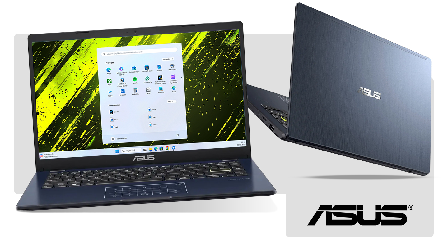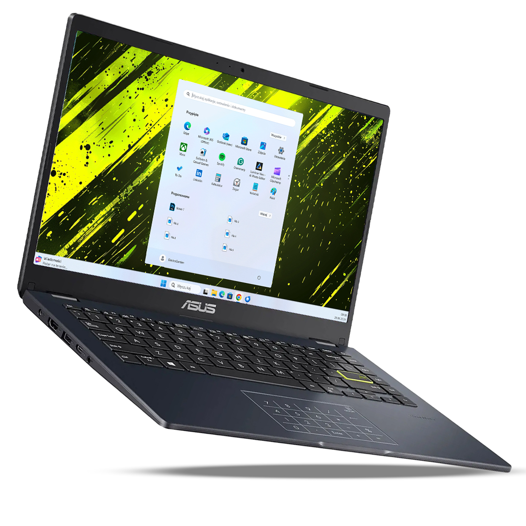 Asus VivoBook Go 14 został stworzony z myślą o ludziach, którzy nie lubią siedzieć w jednym miejscu. Za sprawą kompaktowej konstrukcji laptop bez problemu zmieści się do plecaka czy torebki, a jego niska waga sprawia, że praktycznie nie poczujesz go na plecach. Energooszczędne podzespoły (procesor Celeron i pamięć eMMC) mają jeszcze jedną ogromną zaletę: niskie zapotrzebowanie na energię. Bateria w tym modelu pozwala na długie godziny pracy bez konieczności nerwowego rozglądania się za gniazdkiem. Możesz spędzić dzień na uczelni, obejrzeć kilka odcinków serialu w podróży czy pracować w ogrodzie, ciesząc się pełną swobodą. A gdy już będziesz musiał skorzystać z ładowarki, jej kompaktowe wymiary nie zajmą wiele miejsca w Twoim bagażu.