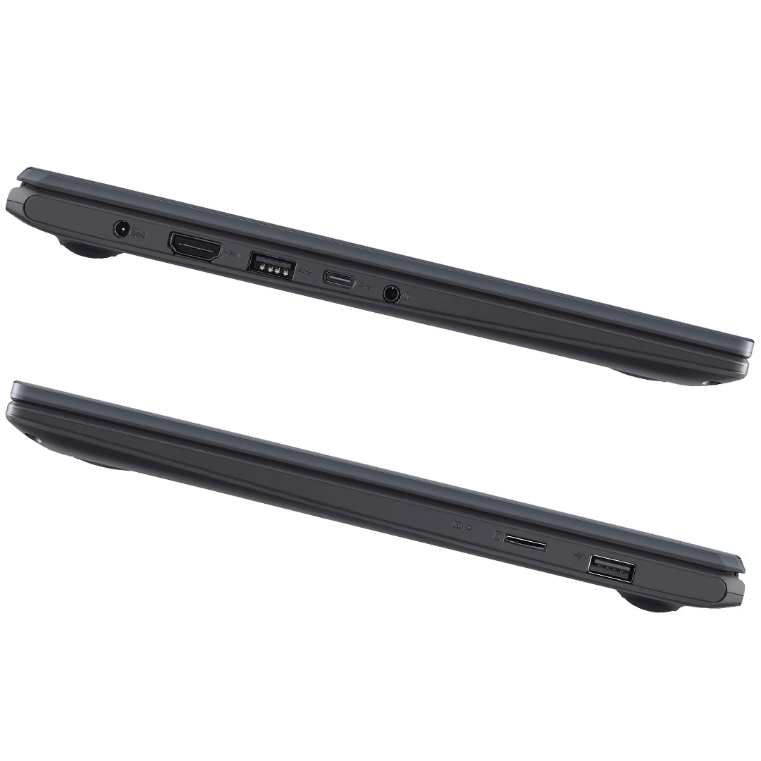 Mimo smukłej obudowy, Asus nie poszedł na kompromisy w kwestii portów. VivoBook Go 14 udostępnia różnorodny zestaw złącz, który zadowoli każdego użytkownika. Znajdziesz tu nowoczesny port USB-C 3.2 Gen 1, który daje możliwość na dynamiczny transfer danych z nowoczesnych smartfonów i dysków zewnętrznych. Do dyspozycji masz również standardowe porty USB typu A, idealne do podłączenia myszki czy pendrive'a. Dzięki pełnowymiarowemu wyjściu HDMI, w kilka sekund podłączysz laptopa do telewizora lub projektora, by obejrzeć film na dużym ekranie lub przeprowadzić prezentację. Całość uzupełnia gniazdo audio combo, pozwalające podpiąć ulubione słuchawki z mikrofonem. To laptop, który jest gotowy na każdą sytuację.