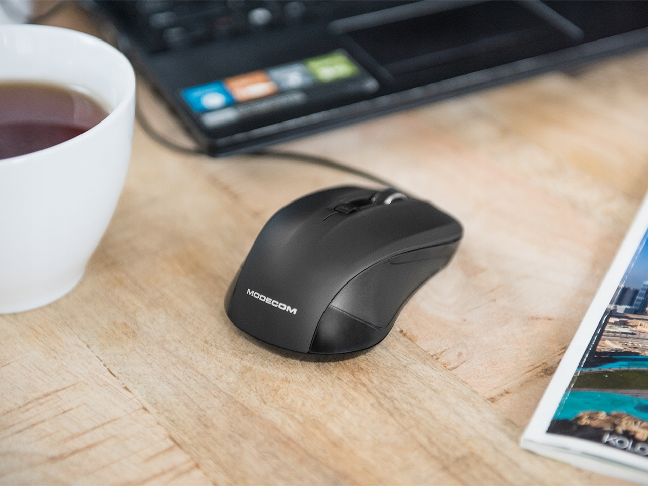Mysz MC-M9.1Tworząc uniwersalną i praktyczną mysz MC-M9.1, za nadrzędny cel stawialiśmy sobie jej żywotność oraz ergonomię użytkowania. Wiemy także, że mysz musi podobać się użytkownikowi. Jej klasyczny wygląd dostępny w trzech wersjach kolorystycznych (czarna, czarno-niebieska, czarno-biała) trafia w gusta wymagających użytkowników doceniających klasykę w nowoczesnym wydaniu. Powierzchnia myszy wykonana jest z przyjemnego w dotyku materiału. MODECOM MC-M9.1 łączy w sobie najlepsze cechy klasycznej, solidnej i ergonomicznej konstrukcji.MateriałPowierzchnia myszy wykonana jest z przyjemnego w dotyku materiału, który zapewnia komfort użytkowania.Paleta barwMysz nie tylko musi działać w niezawodny sposób i nie męczyć dłoni. Musi także cieszyć oko i dlatego oferujemy ją w aż trzech wersjach kolorystycznych.Długi przewódPrzewód USB o długości 180 cm pozwoli cieszyć się swobodą ruchów. Jeśli masz desktopa, to nie musisz obawiać się, że będzie za krótki.SensorMODECOM MC-M9.1 została wyposażona w sensor o rozdzielczości 800/1200/1600 DPI. 1600 DPI to optymalna wartość, aby cieszyć się wygodną pracą z ekranami o wysokiej rozdzielczości.Ergonomia przede wszystkimMysz musi być wygodna i nie męczyć dłoni. Taka jest właśnie MC-M9.1. To urządzenie które po wielu godzinach użytkowania nie powoduje zmęczenia dłoni ani palców.Kluczowe cechy:- Klasyczny i elegancki design- Wysoka ergonomia użytkowania- Dostępna w trzech kolorach (czarny, czarno-niebieski, czarno-biały)- Sensor optyczny 800/1200/1600 DPI (regulowane przyciskiem)- Liczba przycisków: 4- Interfejs: USB- Długi przewód 180 cm