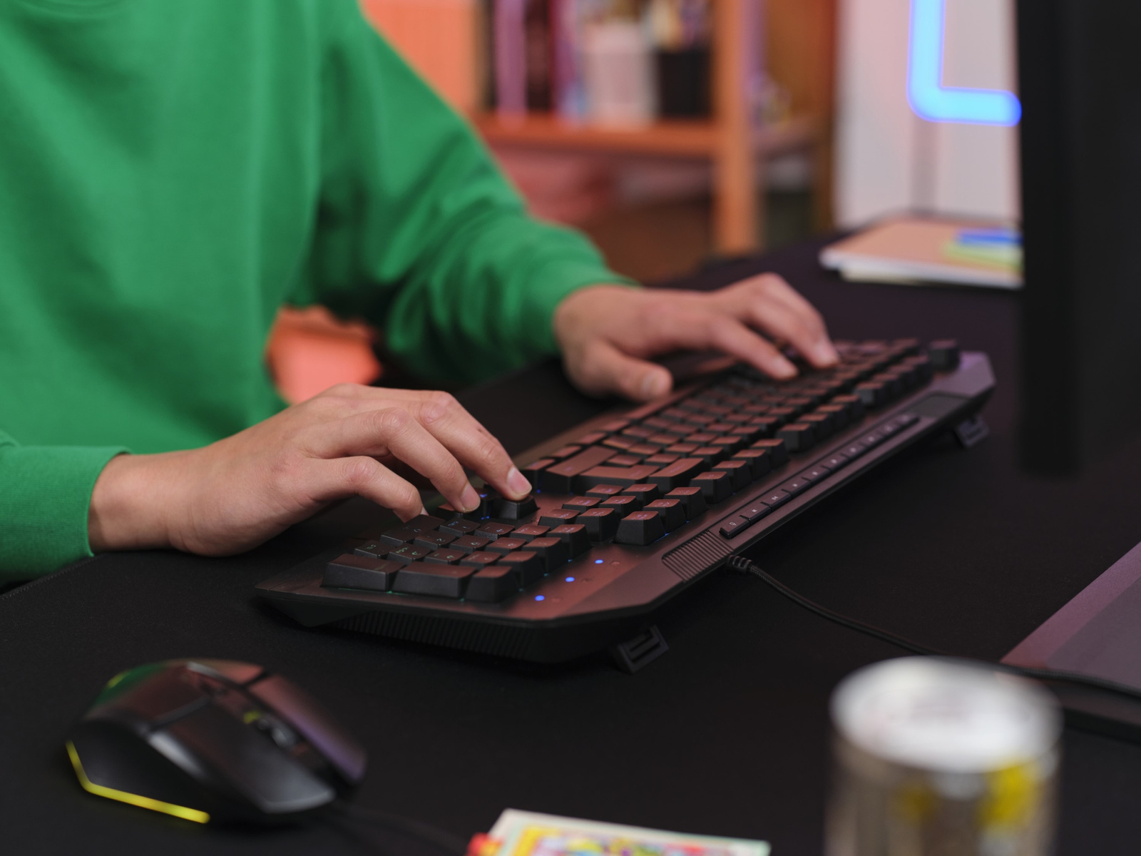 - Pulsujące oświetlenie RGB z regulowanym poziomem jasności i kolorów pozwala grać ze stylem