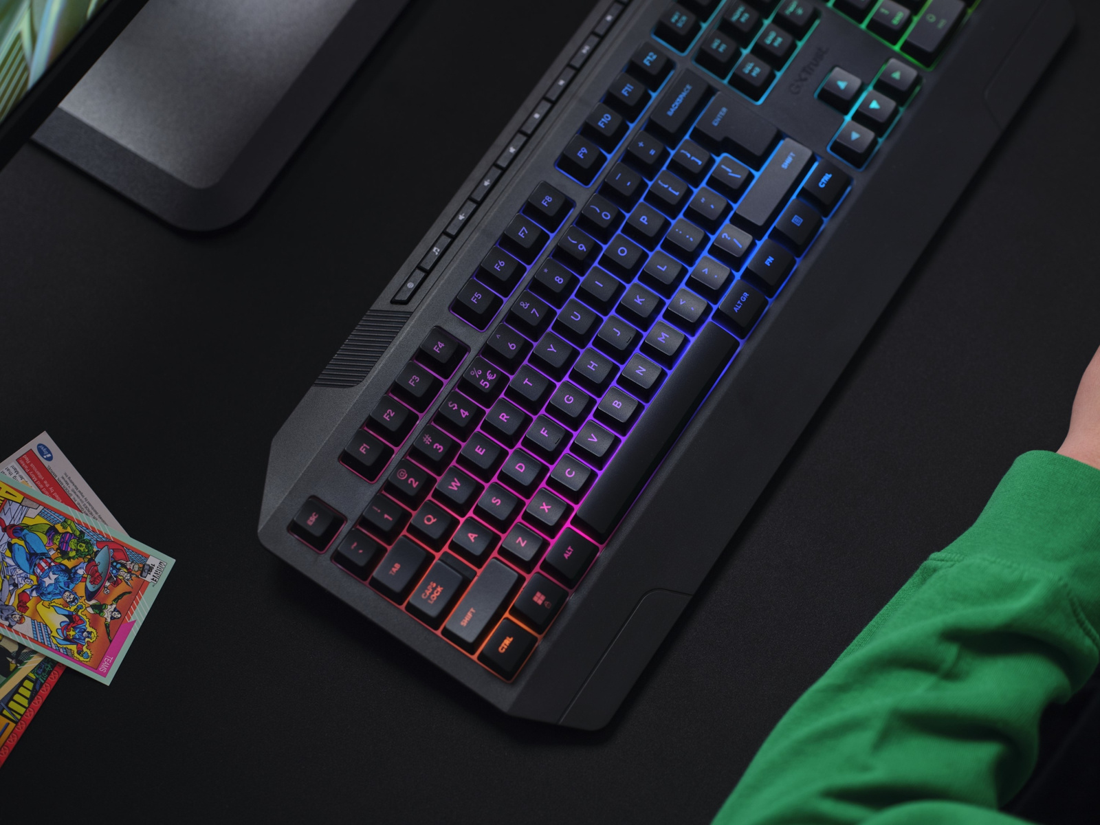 Podświetlana klawiatura dla graczy z efektem tęczowej fali i miękkim skokiem klawiszy.