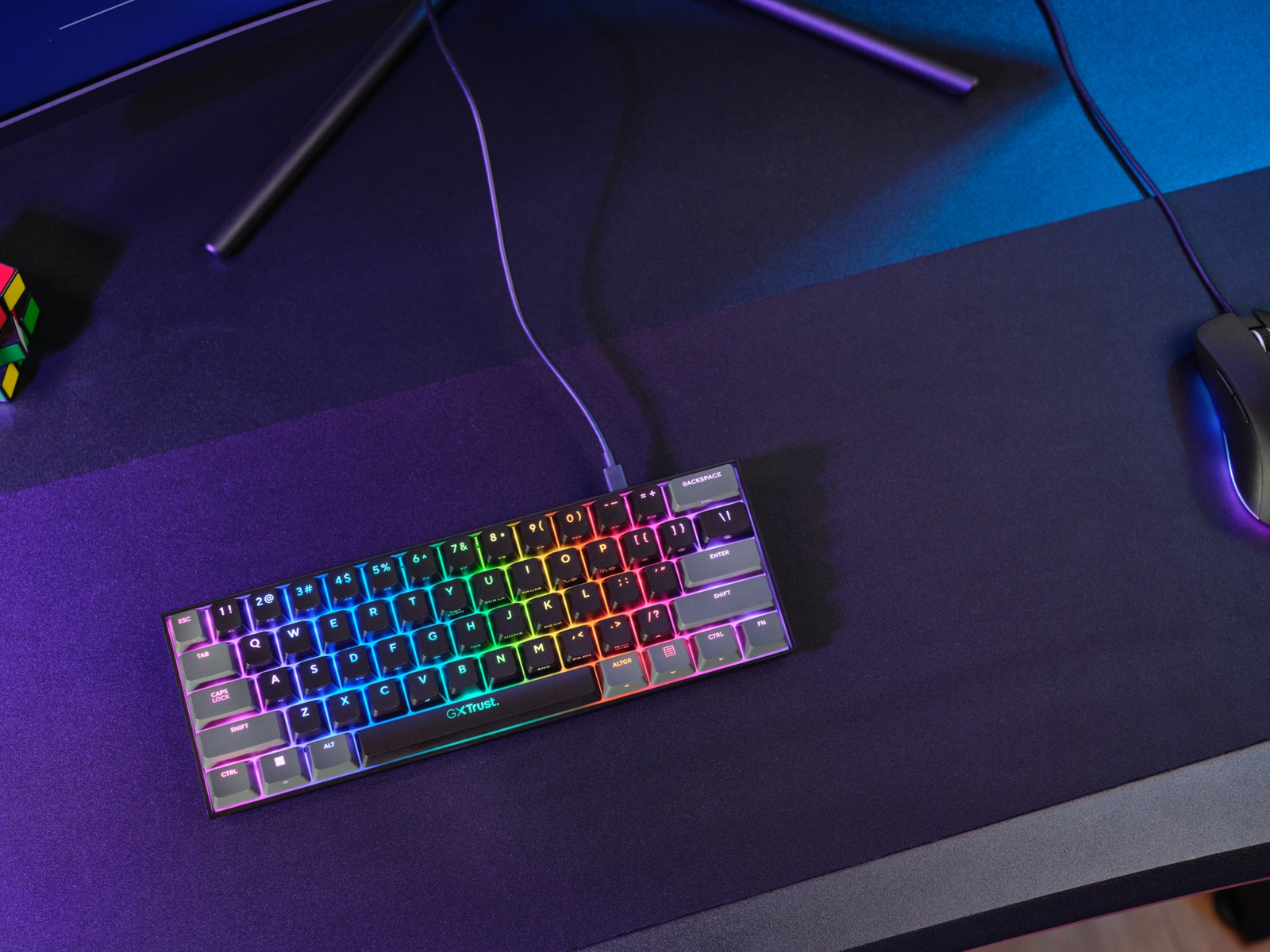 - Ultrakompaktowa klawiatura w rozmiarze 60% zapewnia więcej miejsca na ruch myszy i dodatkowe miejsce na biurku.