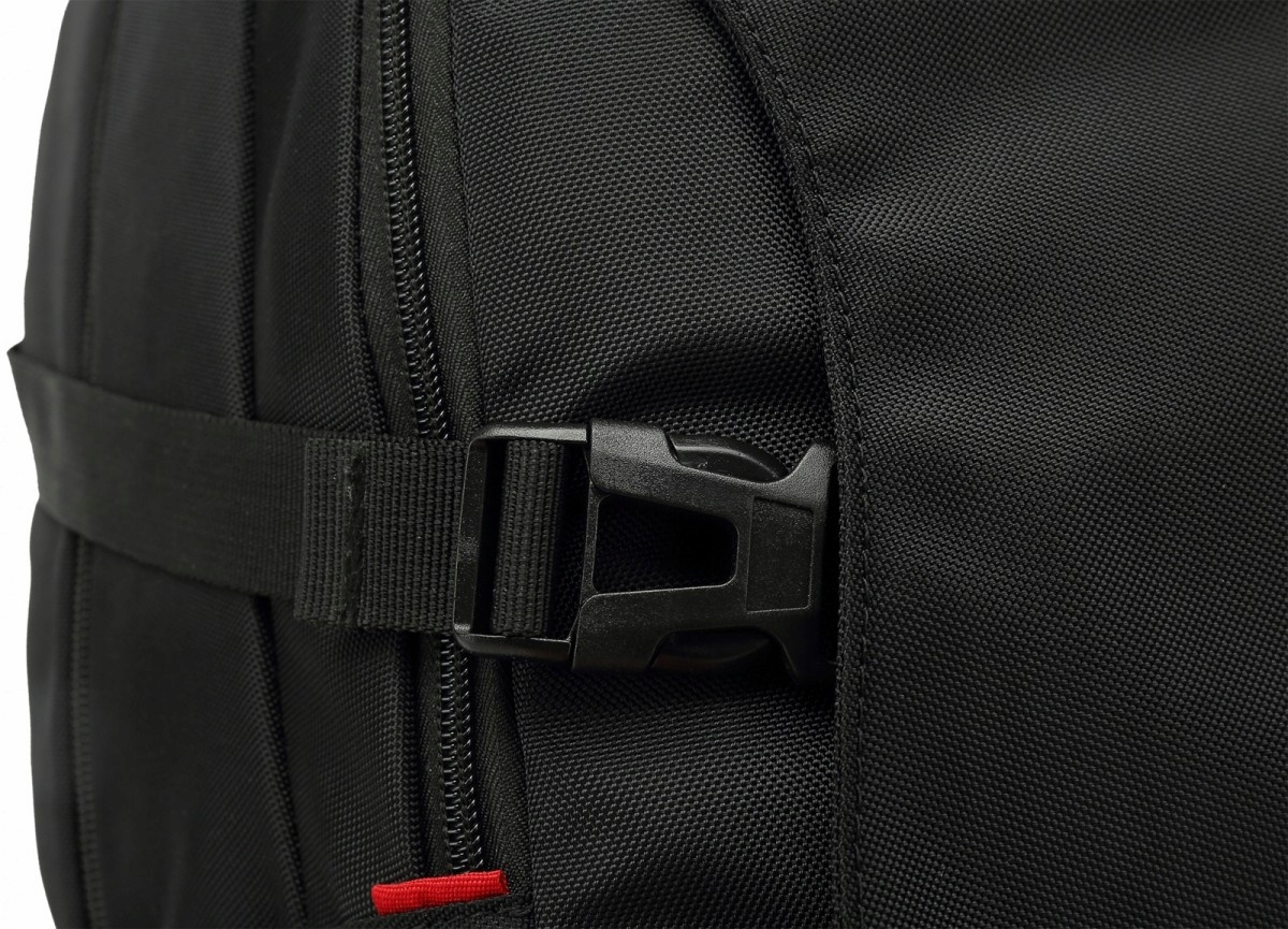 - Aby mieć natychmiastowy dostęp do jakiegokolwiek przenoszonego urządzenia lub sprzęty, można użyć solidnych obustronnych zamków, które pozwolą otworzyć torbę w najlepszej pozycji.